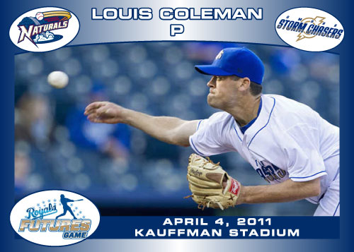 I recently did this custom card of Coleman for the Royals futures game he appeared in on April 2nd, 2011. It was my first Louis Coleman custom card. He didn’t even make my 55 card spring training set. There is one notable problem with this card. The futures game was on Saturday April 2nd but the card says April 4th, 2011. The card is wrong, along with every other card I made in this 27 card set. Ugh, that is what you get when you try to hurry. I will have to go and change each individual card in this set.