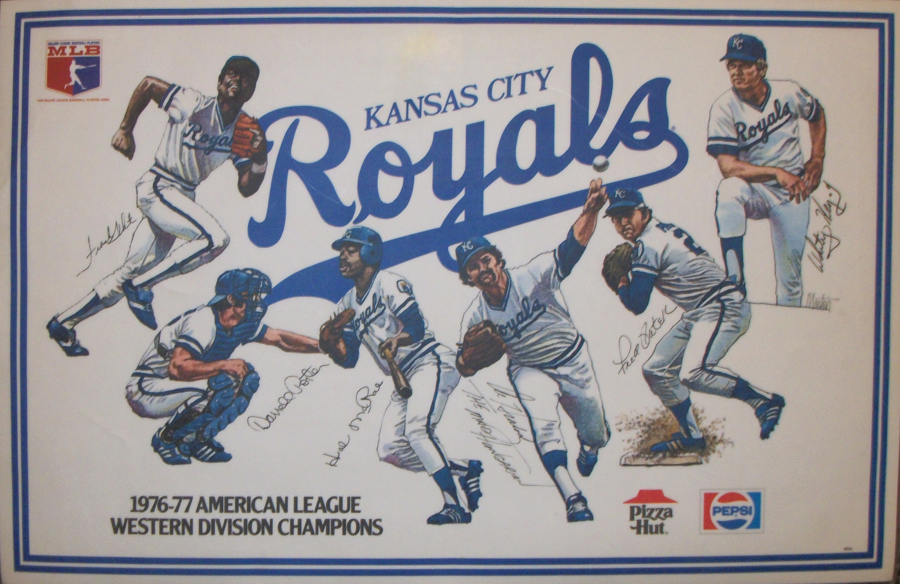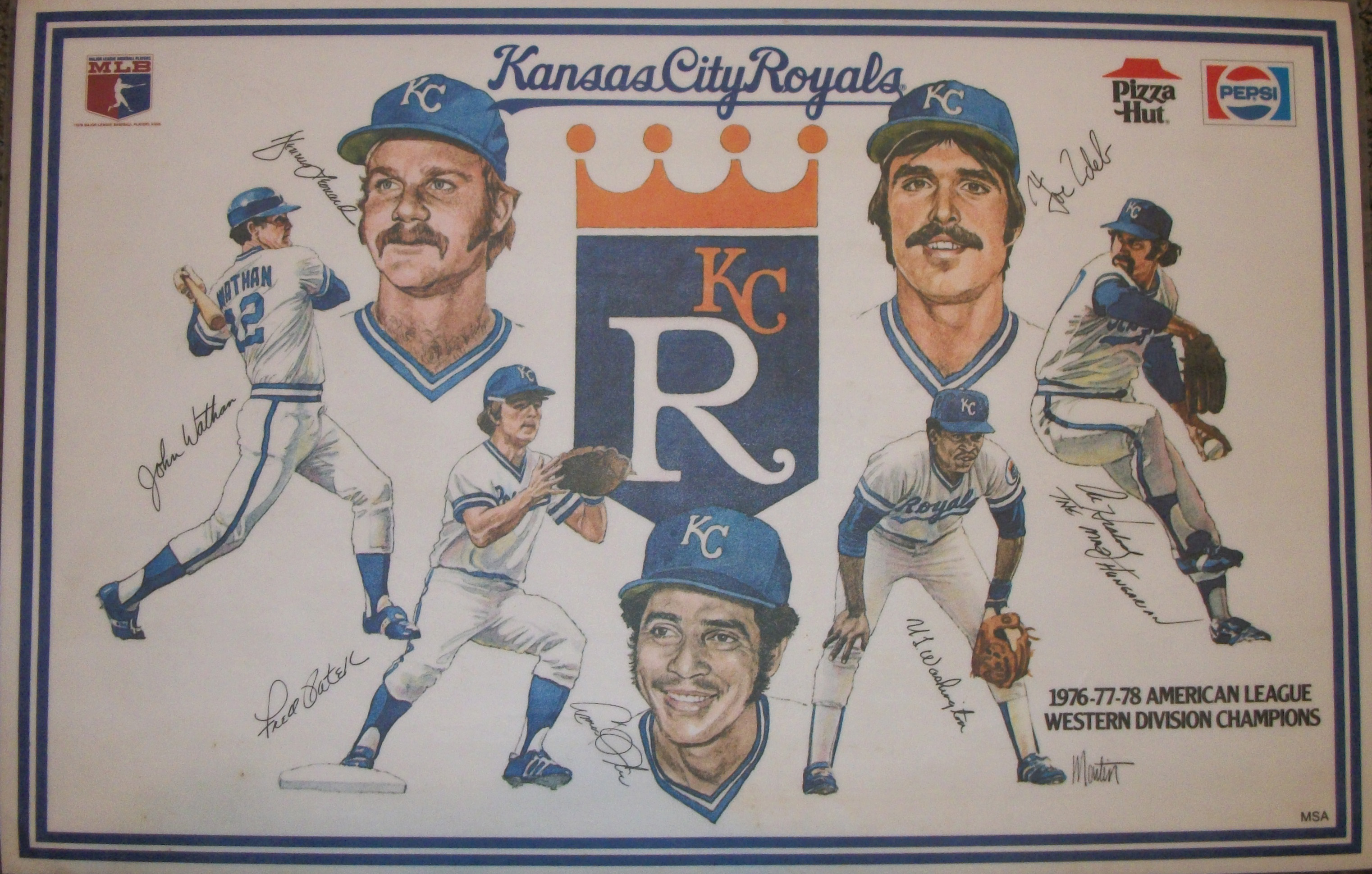 Kansas City Royals placemats; left to right; Hal McRae, Paul Splittorff, Ed Rodriguez, Steve Braun, Darrell Porter, Pete LaCock, George Thorp