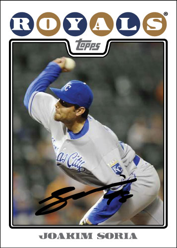 Joakim Soria hasn’t been on the mound this year but the History of Joakim Soria project lives on. This installment is 2008 Topps. Topps went back to the classic white border after the 2007 Topps black border cards. The card is very playful with the lettering at the top in the multi-colored circles. The border is large and takes a ton of room away from the picture on the card. The signature is a nice touch that I always liked but this card design ranks pretty low on my list of Topps’ designs.