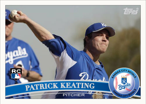 This is the final card of my 2011 Topps spring training Royals set. Patrick Keating is just another great arm in the Royals organization. I believe he is currently in AA Northwest Arkansas. He is a rarity in the Royals organization in the fact that he is right handed. The system is full of left handed pitchers and a couple righties will have to be in the rotation as well. This could mean a future spot for guys like Hochevar, Aaron Crow and Patrick Keating.