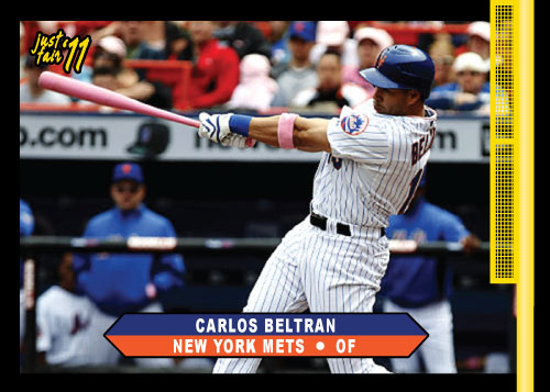 This would actually involve breaking a personal rule of mine. I like to use current pictures. This was something I envisioned when I started my Just Fair set. I wanted to use almost all pictures from the current year and mostly pictures from within a couple days of when I post the cards. I wouldn’t be able to get pink bat pictures from 2011 unless I wait until late in the day I think, so I decided to use pictures from the last couple years. I just needed to be sure all the players were still on the same team.