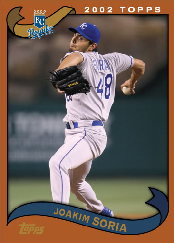 With 2012 Topps the Royals got 11 base set players included so it was a little fodder to get me pumped up for the season. The design gets low grades from me. It isn’t horrible but I don’t have a lot to say about it that is good. It is bare-bones Topps. A lot of room for picture is always nice but it is straight out boring other than that. Topps cards almost always grow on me so in July I may rave about the 2012 set, I don’t know yet. Since Joakim Soria was once again not included in the series 1 set it gave me an opportunity to make my card first again, like last year.