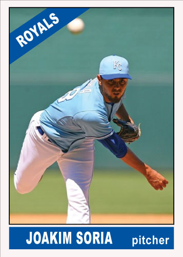 I like the powder blue shot of Soria here. His high leg kick leaves a great space to display the autograph as well. This is a card I will have to make more variations of, look for it to pop up as a “Custom Card of the Day” soon.
