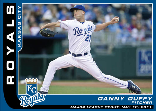 Danny Duffy was the a high profile major league debut for the Kansas City Royals against the Texas Rangers in Kauffman Stadium on May 18, 2011. He started the game and went 4 innings giving up 2 runs on 4 hits and striking out 4. Duffy did have control problems in that game which was his downfall giving him a high pitch count quickly as he walked 6 batters in his 4 innings. He would not figure in the decision.