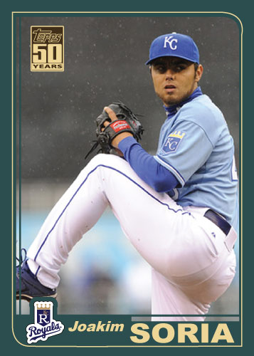 I like the powder blue shot of Soria here. His high leg kick leaves a great space to display the autograph as well. This is a card I will have to make more variations of, look for it to pop up as a “Custom Card of the Day” soon.